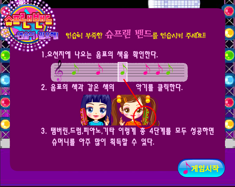 슈 친구들이 밴드 연습을 하는 플래시게임입니다.